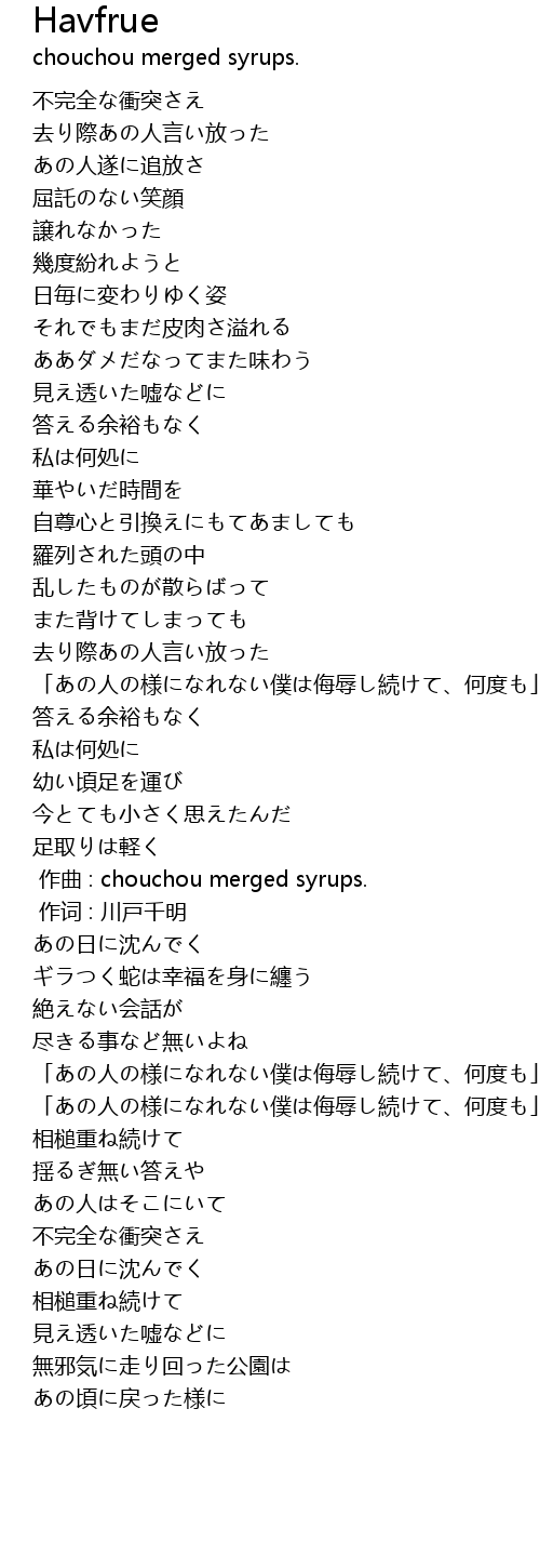 | 歌手 | chouchou merged syrups. |