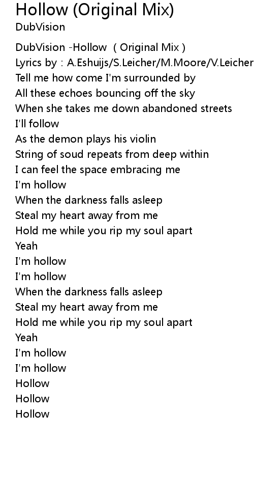 | [00:00.412] | DubVision -Hollow (Original Mix) |