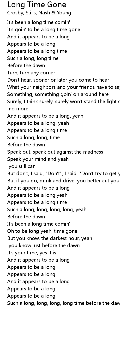 Oh to be long yeah, time gone |
