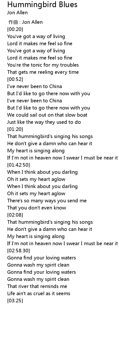 | 歌曲 | Hummingbird Blues |
