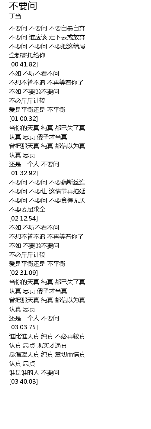 | [03:31.79] | shuí shì shuí de rén bú yào wèn |