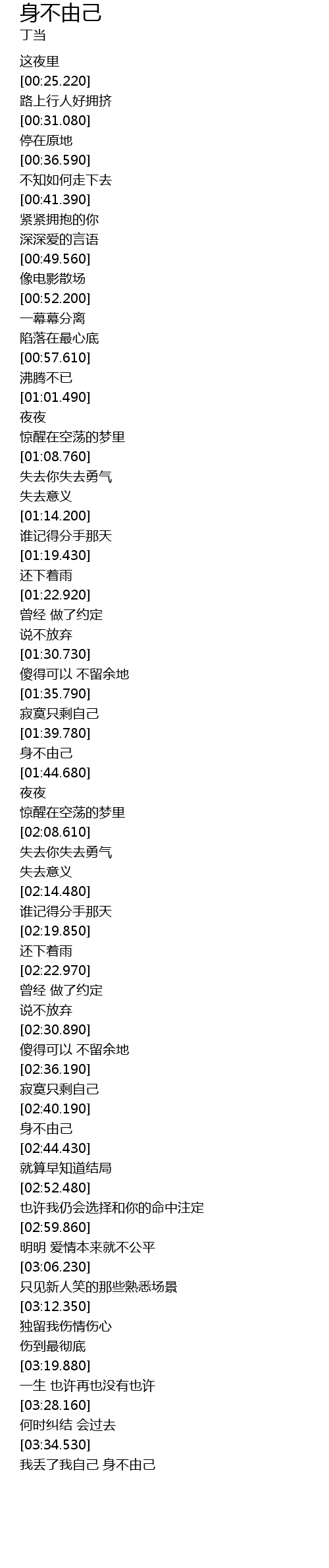 | [03:38.090] | 我丢了我自己 身不由己 |