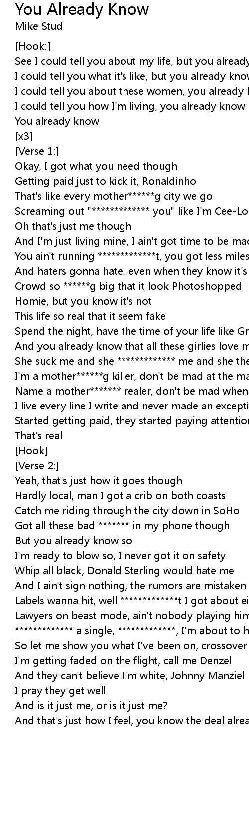 | See I could tell you about my life, but you already know | |