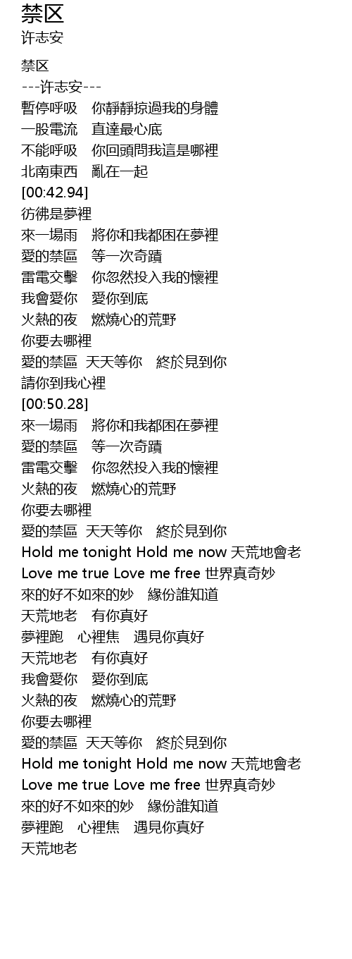 | [01:49.32] | 愛的禁區 等一次奇蹟 |