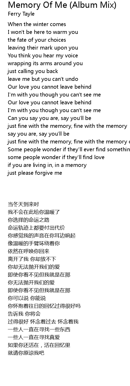 just fine with the memory, fine with the memory of me |