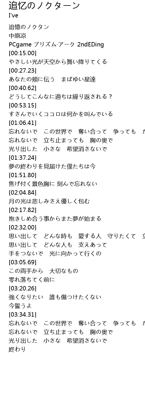 | [00:00.00] | 追憶のノクタン |