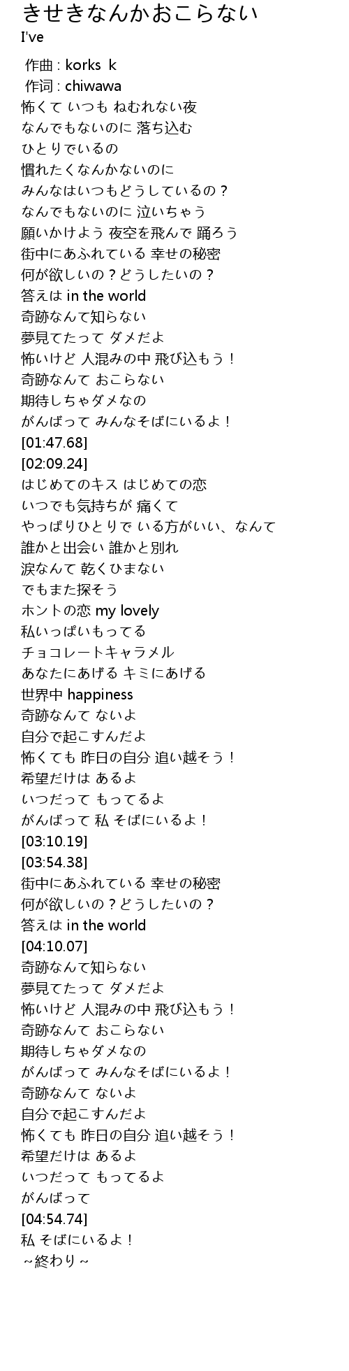 | [03:04.66] | がんばって 私 そばにいるよ! |