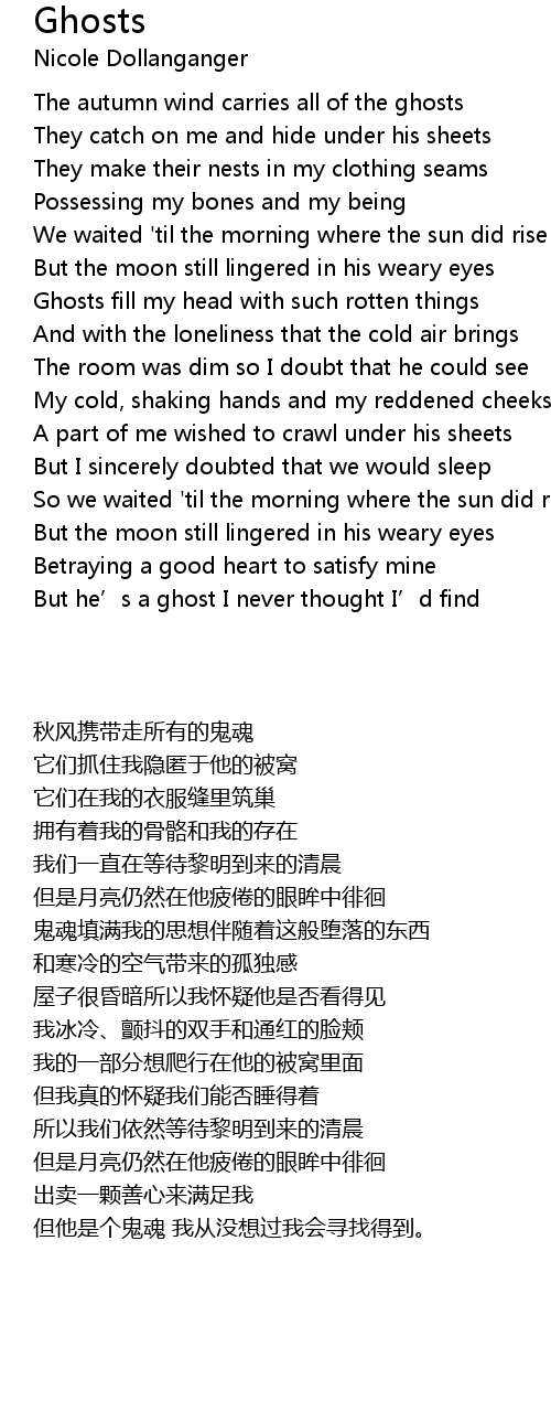 | [01:16.01] | Ghosts fill my head with such rotten things |
