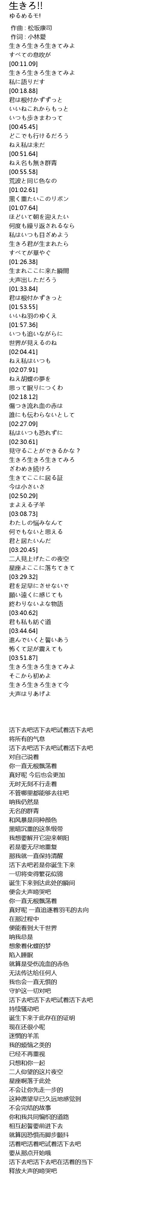| [03:52.58] | 生きろ生きろ生きてみよ |
