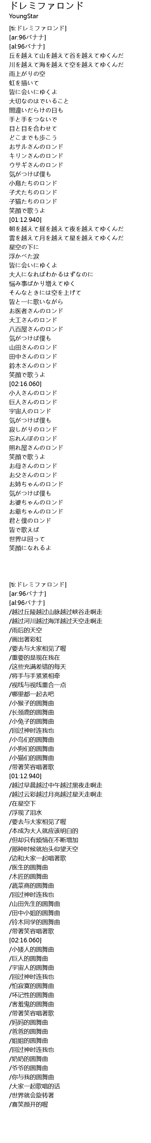 | [01:27.810] | 雲を越えて月を越えて星を越えてゆくんだ |
