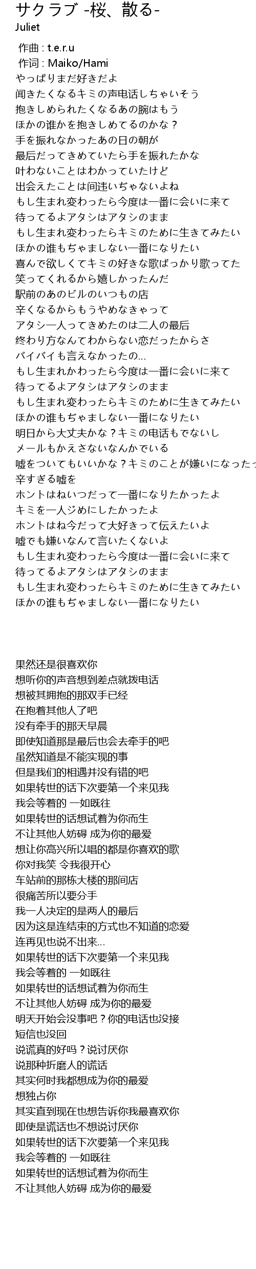 | [02:45.910] | もし生まれ変わったらキミのために生きてみたい |