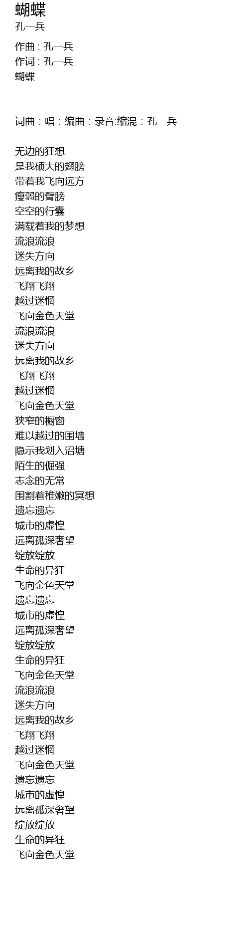 | 词曲:唱:编曲:录音:缩混:孔一兵 | |