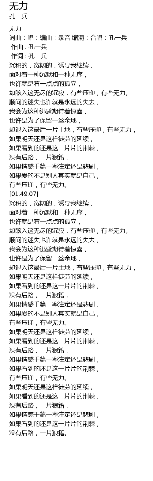 | [01:42.13] | yǒu xiē yā yì, yǒu xiē wú lì. |