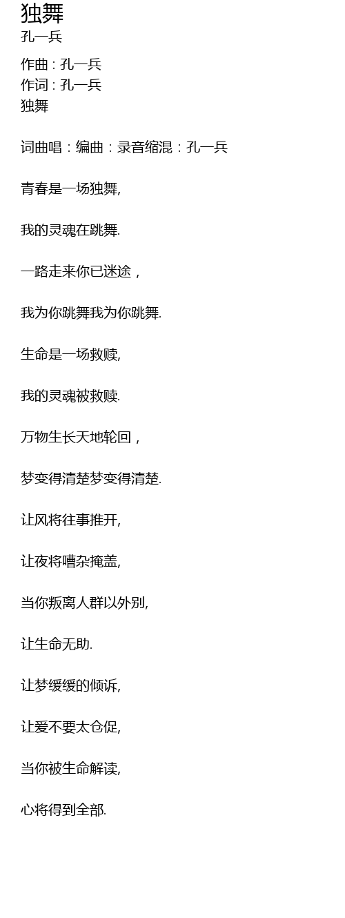 | 作词 : 孔一兵 | |