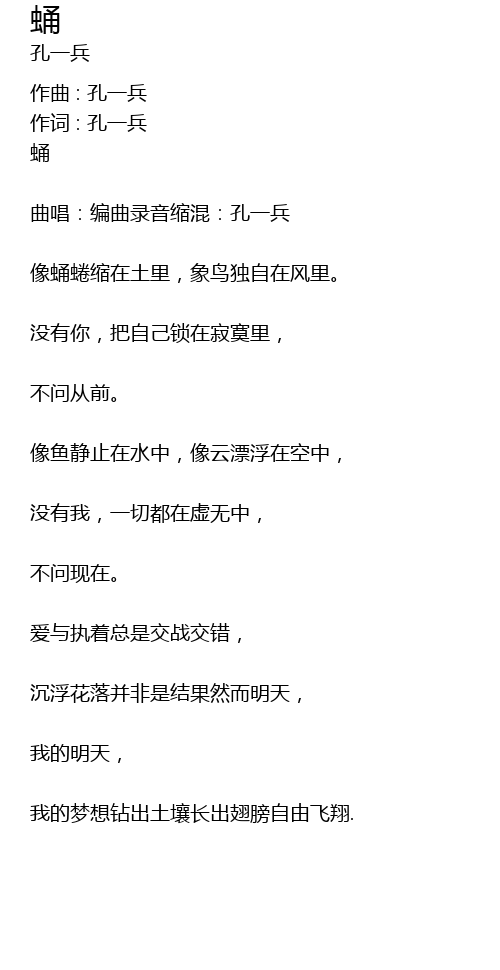 | 作词 : 孔一兵 | |