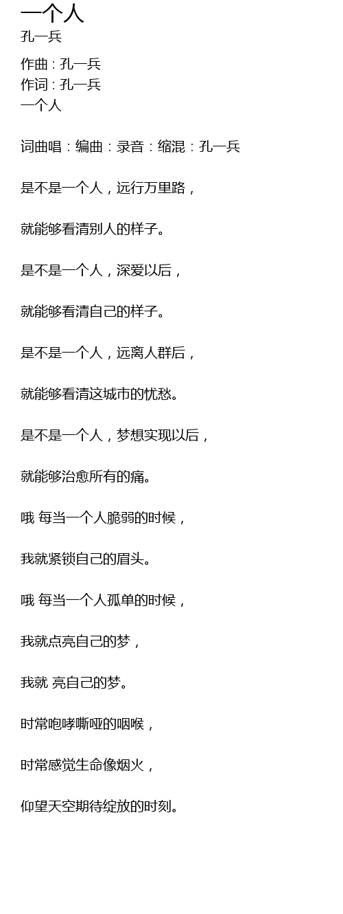 | 词曲唱:编曲:录音:缩混:孔一兵 | |