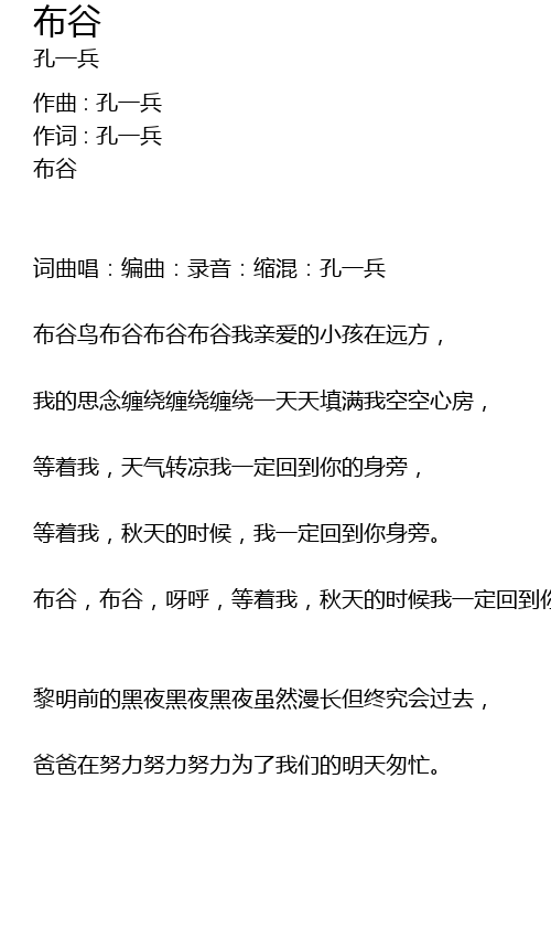 | 布谷鸟布谷布谷布谷我亲爱的小孩在远方, | |