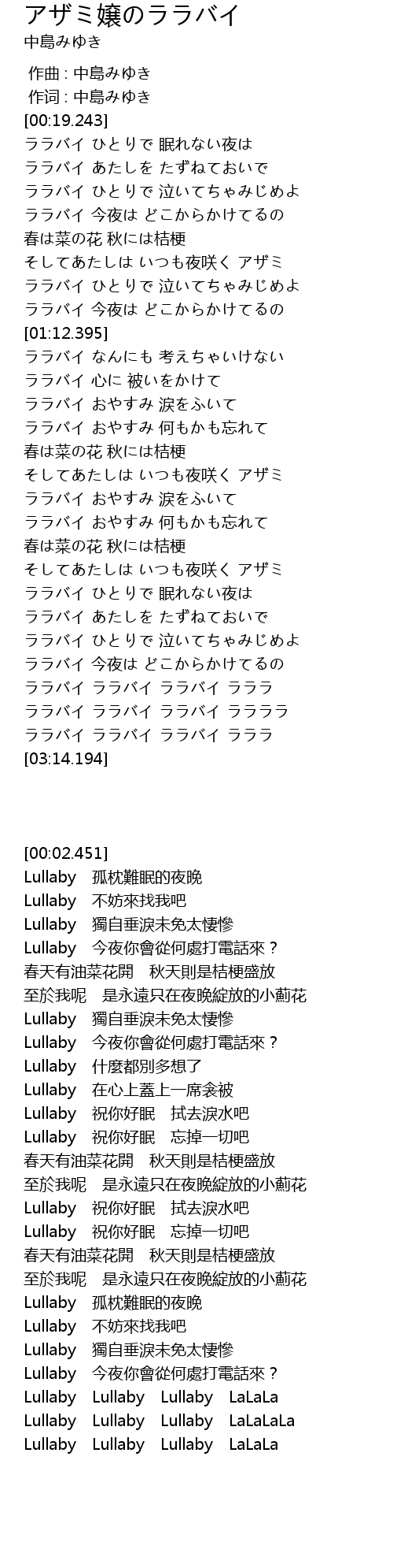 | [03:06.743] | Lullaby Lullaby Lullaby LaLaLa |