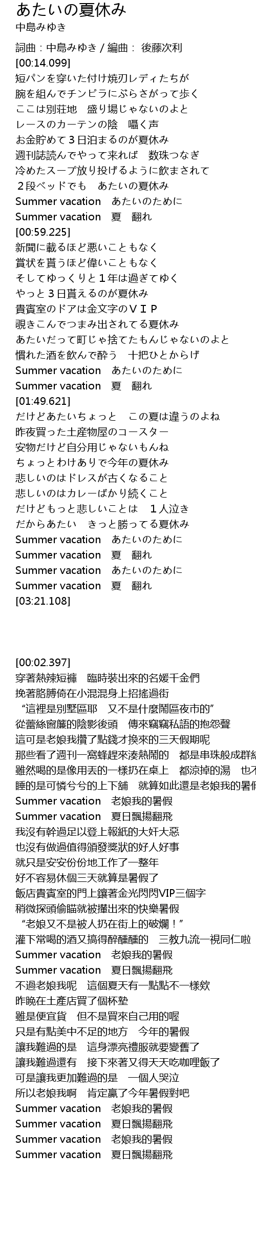 | [03:16.571] | Summer vacation 夏日飄揚翻飛 |