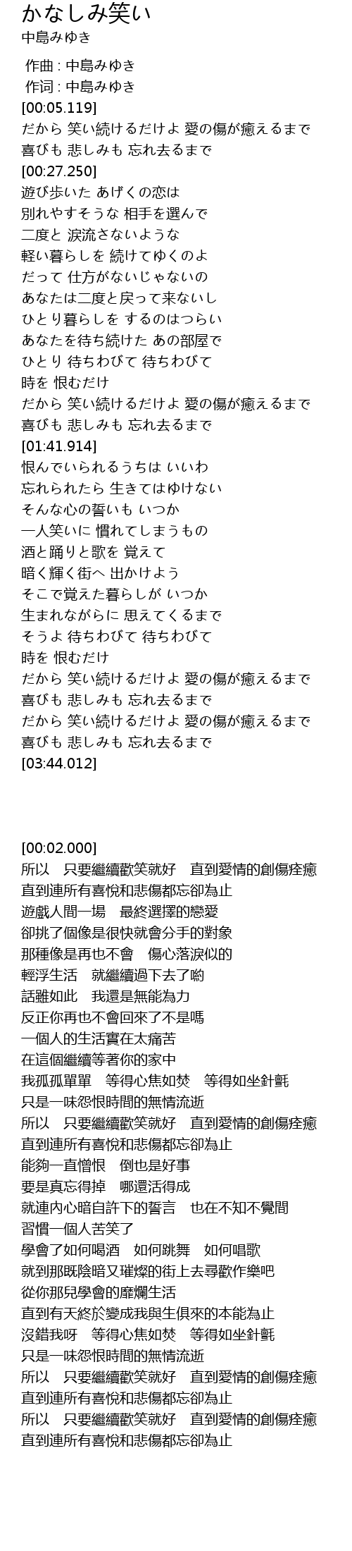 所以 只要繼續歡笑就好 直到愛情的創傷痊癒 |