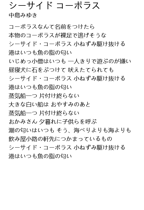 | 潮の匂いはいつも そう、海べりよりも海よりも | |