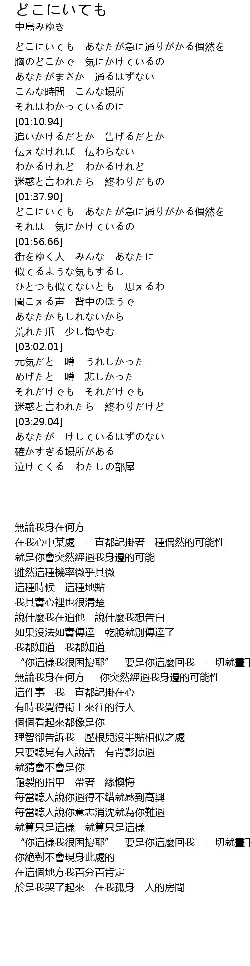 | [01:38.28] | 無論我身在何方 你突然經過我身邊的可能性 |