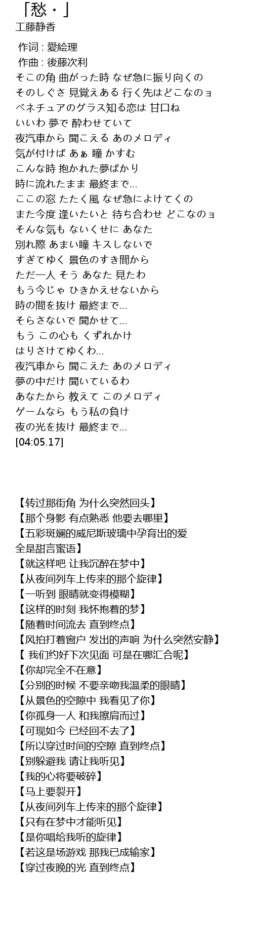 | 歌曲 | 「愁・」 |