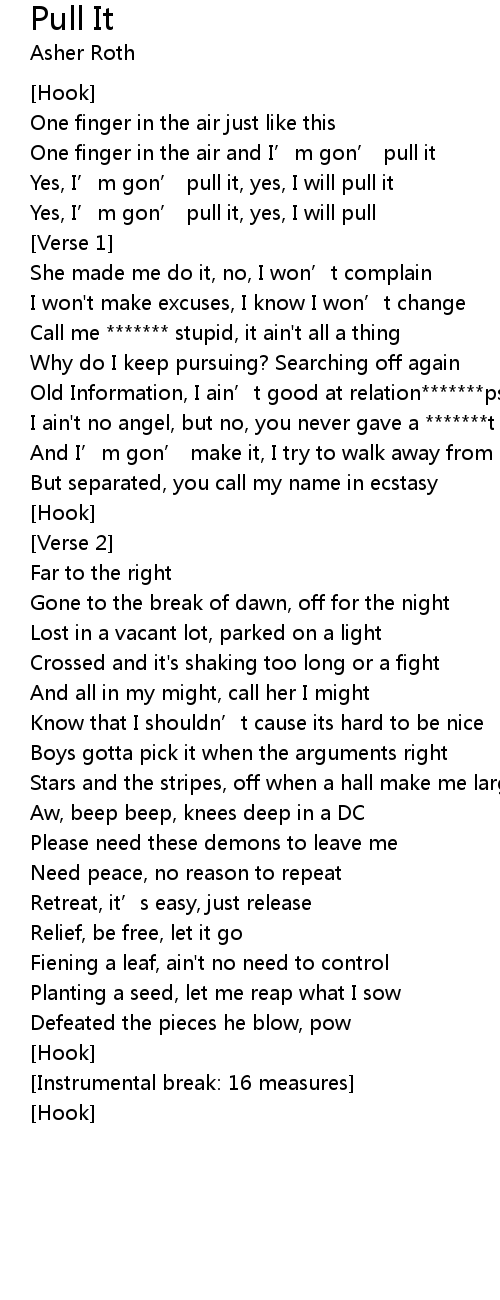 | One finger in the air and I’m gon’ pull it | |