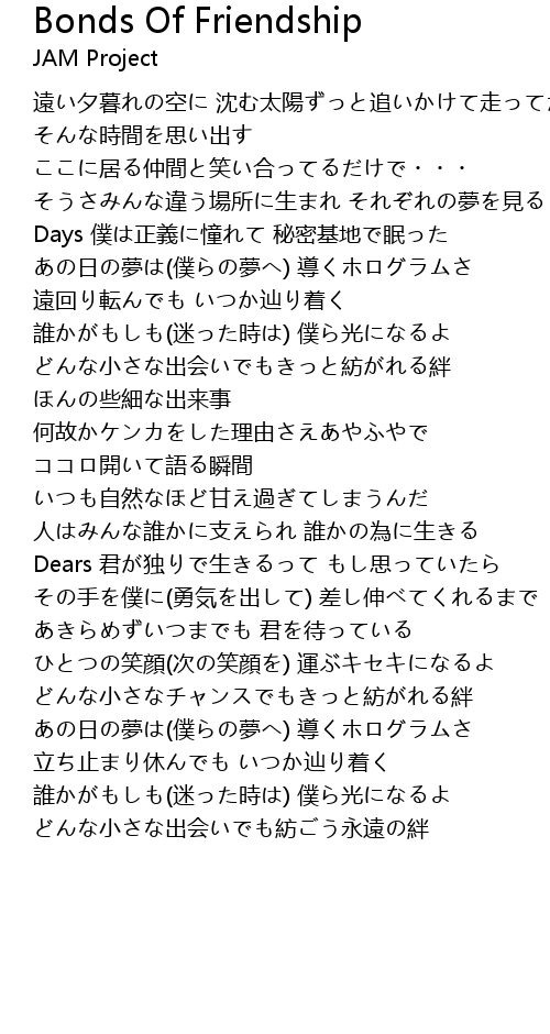 | 歌曲 | Bonds Of Friendship |