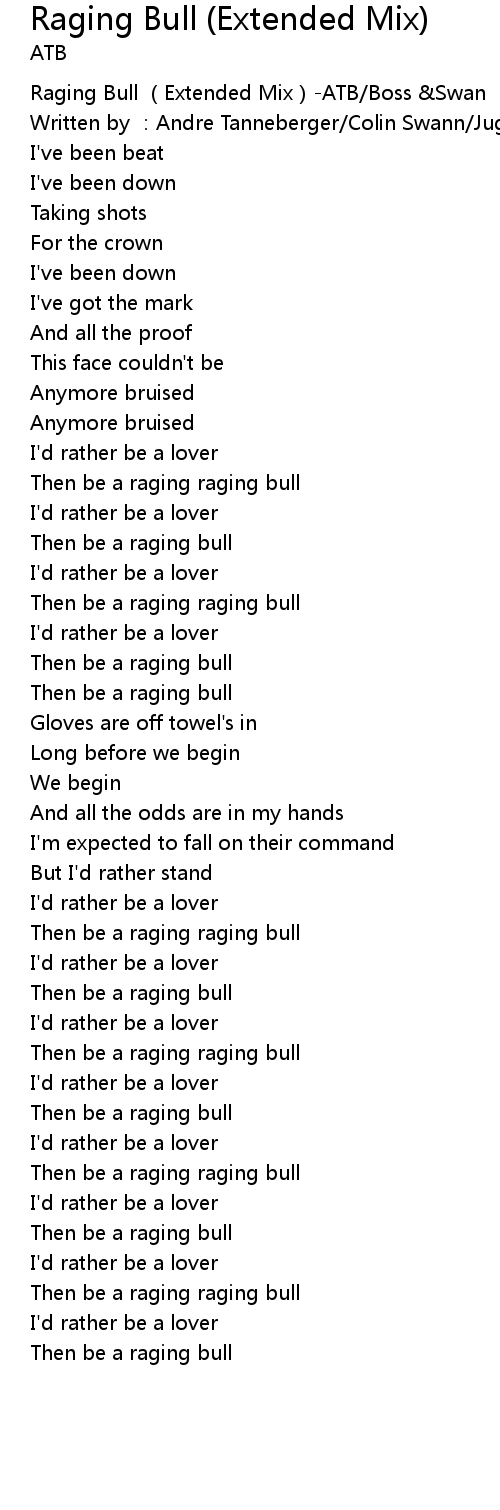 | [00:00.481] | Raging Bull Extended Mix ATB Boss Swan |