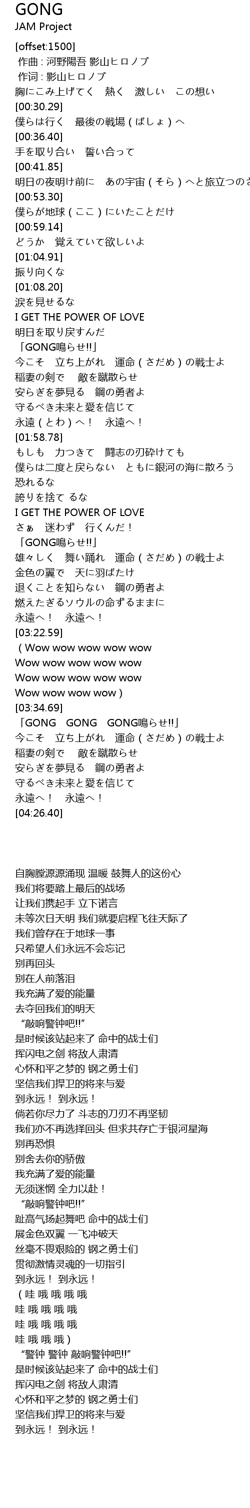 | [03:51.24] | 「GONG GONG GONG鳴らせ!!」 |