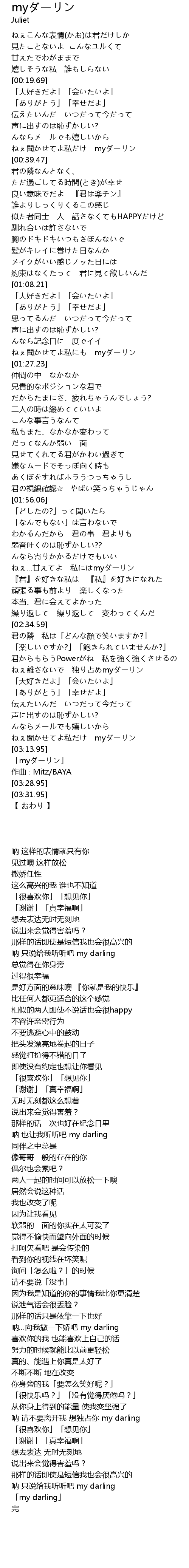 | [01:23.26] | ねぇ聞かせてよ私にも myダーリン |