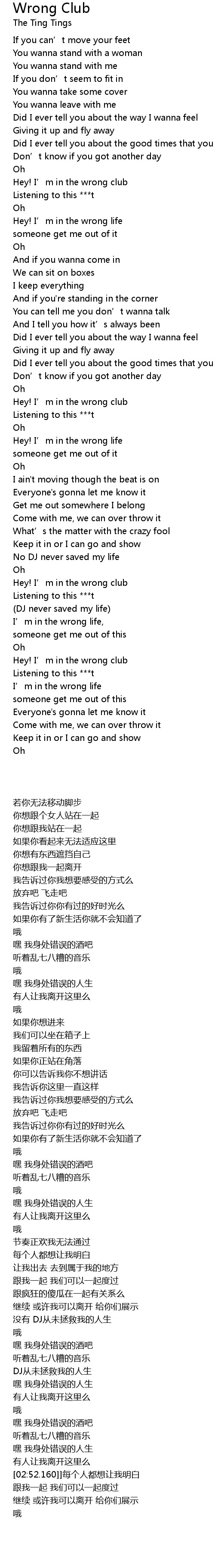 | [02:32.870] | 嘿 我身处错误的酒吧 |