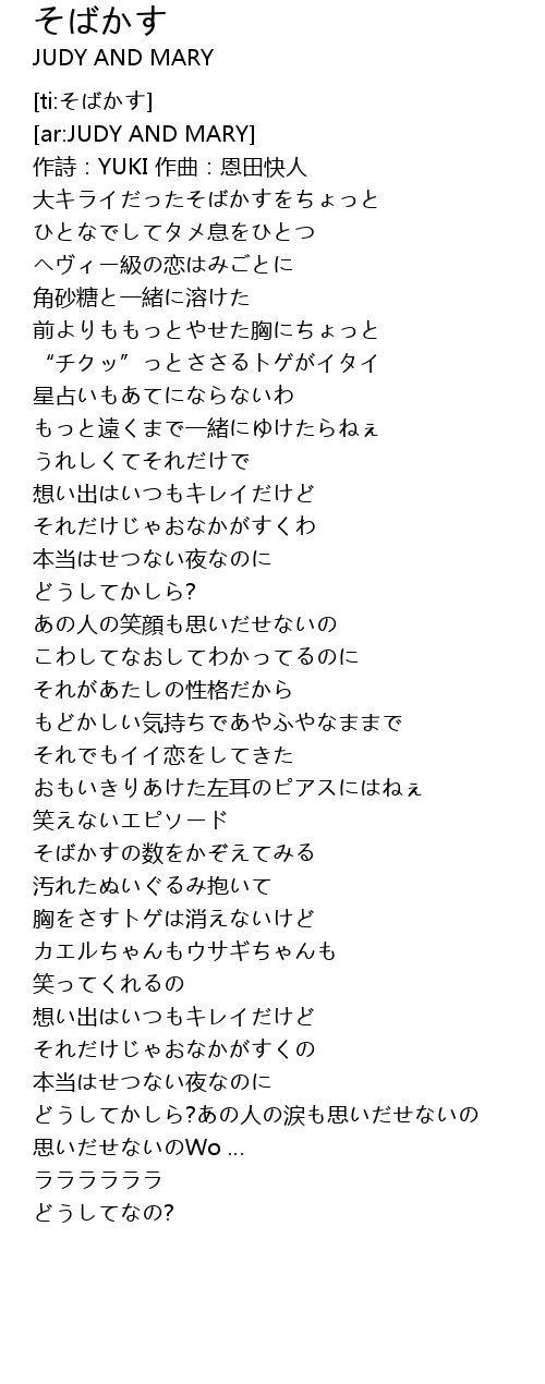 | [00:04.94] | 作詩:YUKI 作曲:恩田快人 |