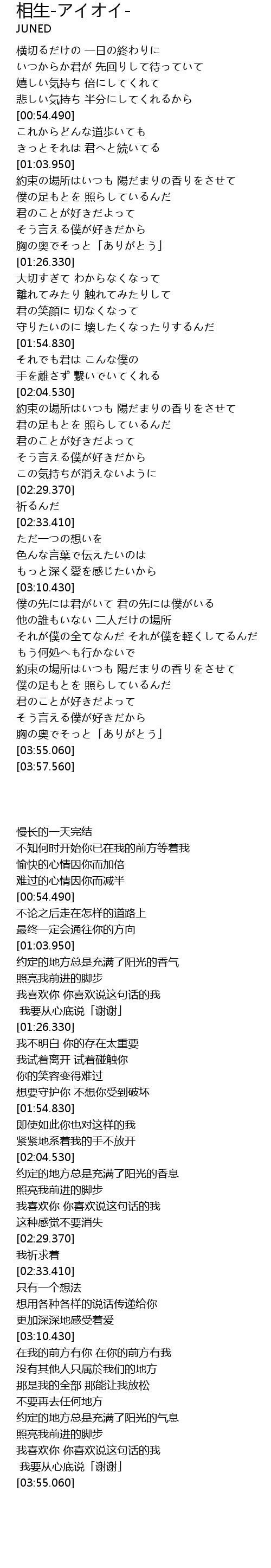 | [03:11.570] | 僕の先には君がいて 君の先には僕がいる |