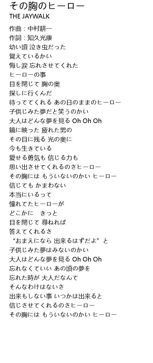 | [00:43.85] | 待っててくれる あの日のままのヒーロー |