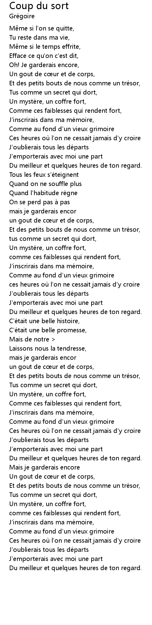 | 歌曲 | Coup du sort |