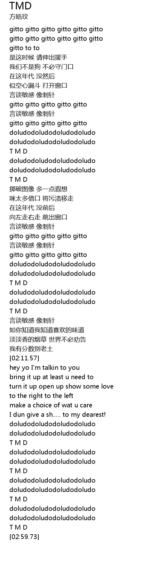 | [02:35.76] | T M D |