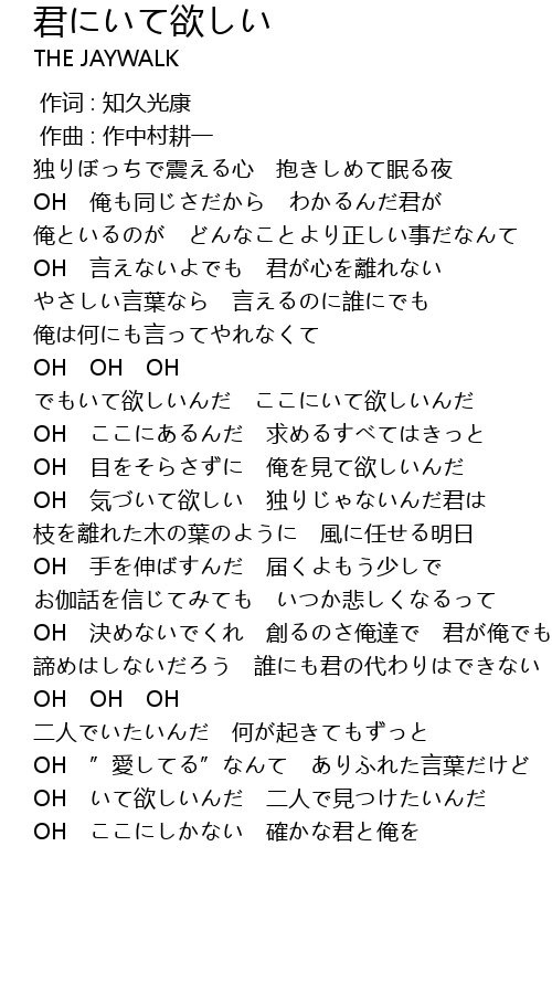 | [03:11.600] | OH いて欲しいんだ 二人で見つけたいんだ |