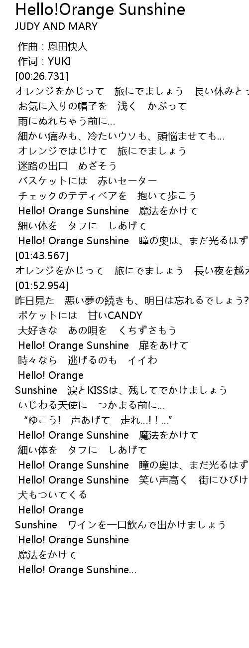 | [04:00.779] | Hello! Orange Sunshine |