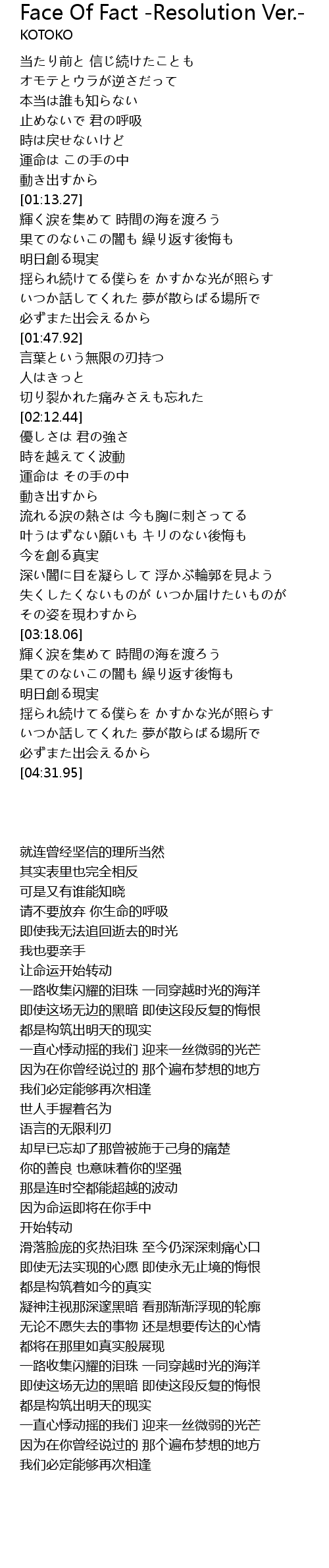 | 歌曲 | Face Of Fact -Resolution Ver.- |