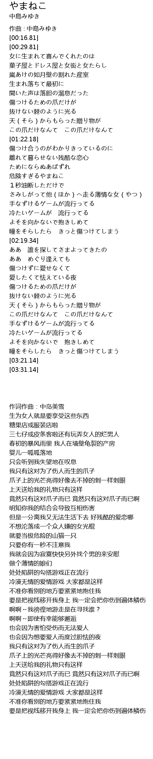 | [00:11.81] | 作词作曲:中岛美雪 |