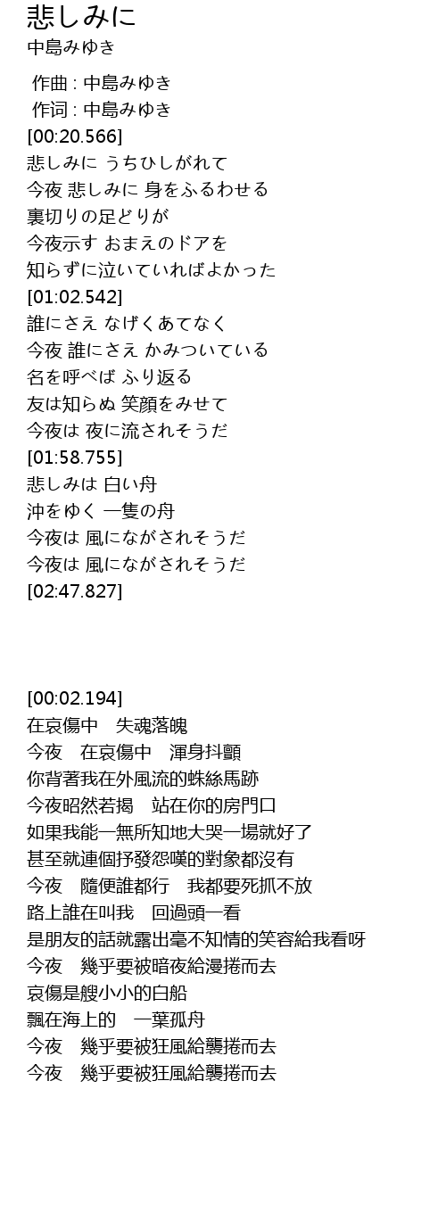 作词 : 中島みゆき |