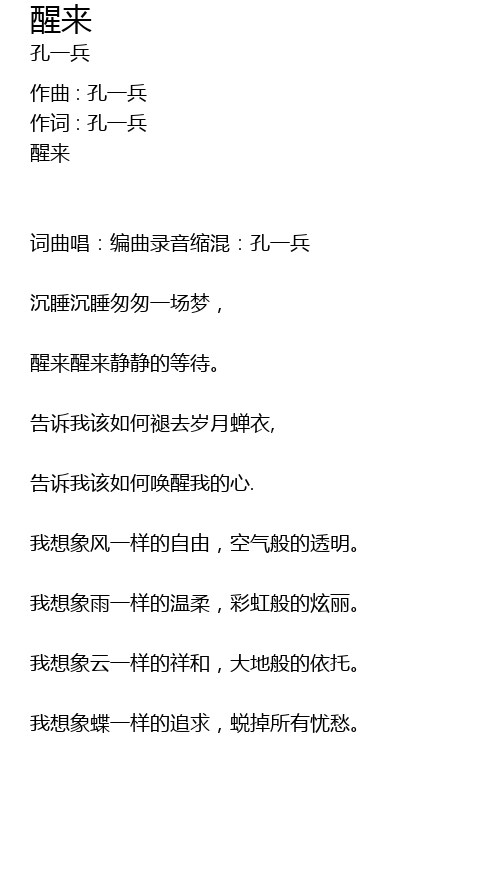 | 作词 : 孔一兵 | |
