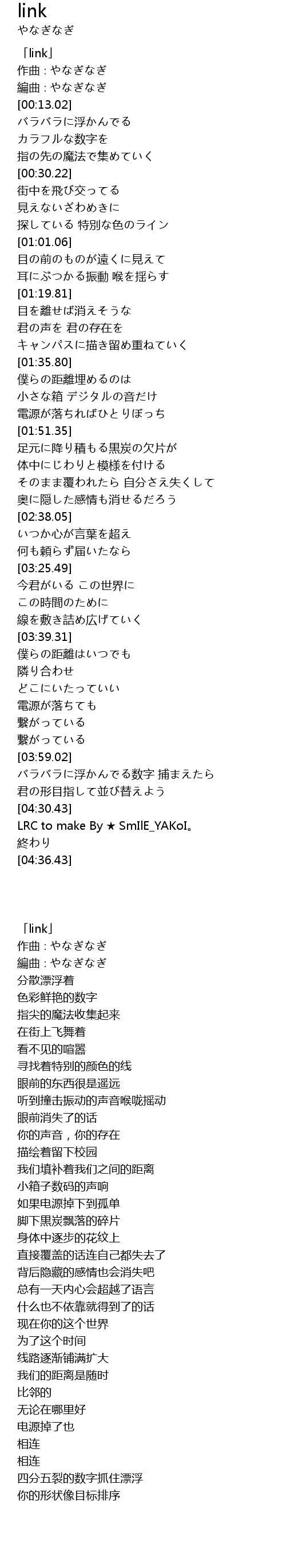 | [04:32.43] | LRC to make By SmIlE_YAKoI. |