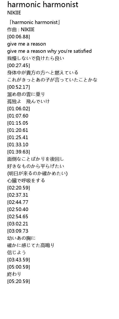 | [03:57.77][01:20.61] | 私 は 私 になれない |