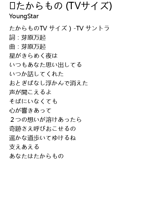 | [00:01.201] | たからものTV サイズ)-TV サントラ |