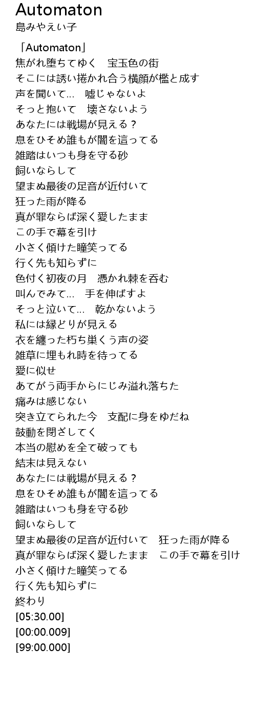 | [02:58.29] | 衣を纏った朽ち巣くう声の姿 |