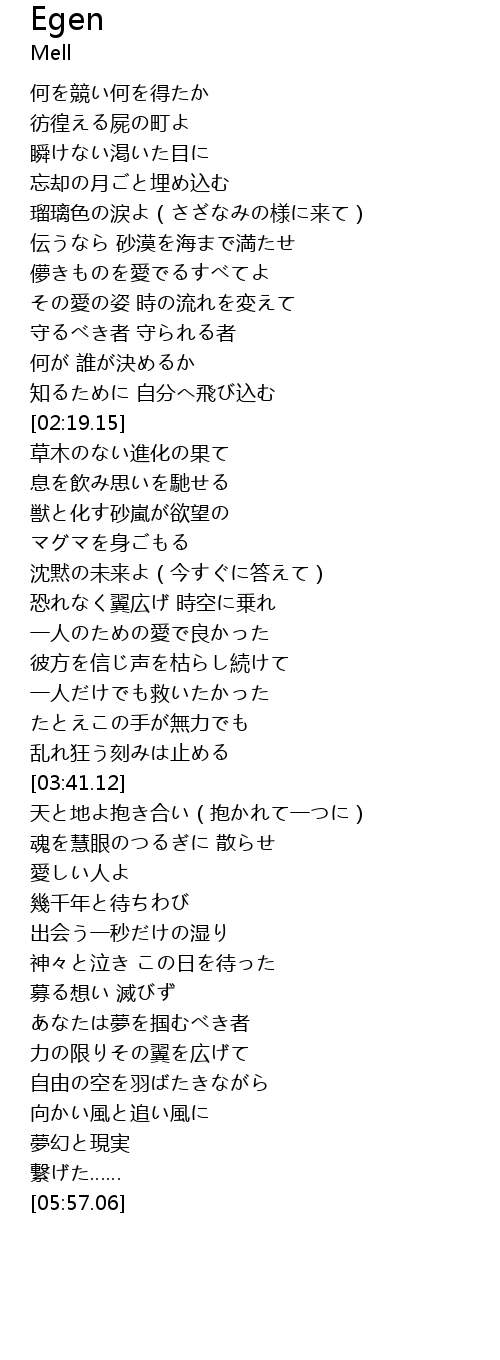 | [04:45.18] | 天と地よ抱き合い(抱かれて一つに) |