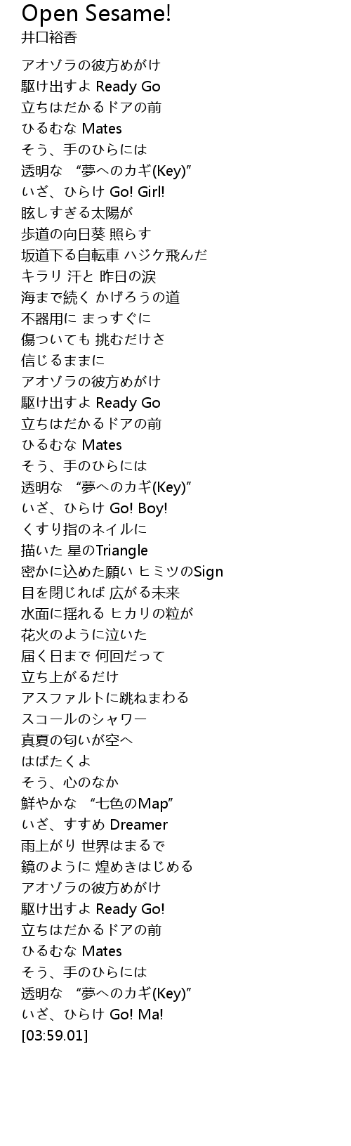 [03:33.33] いざ、ひらけ Go! Ma!